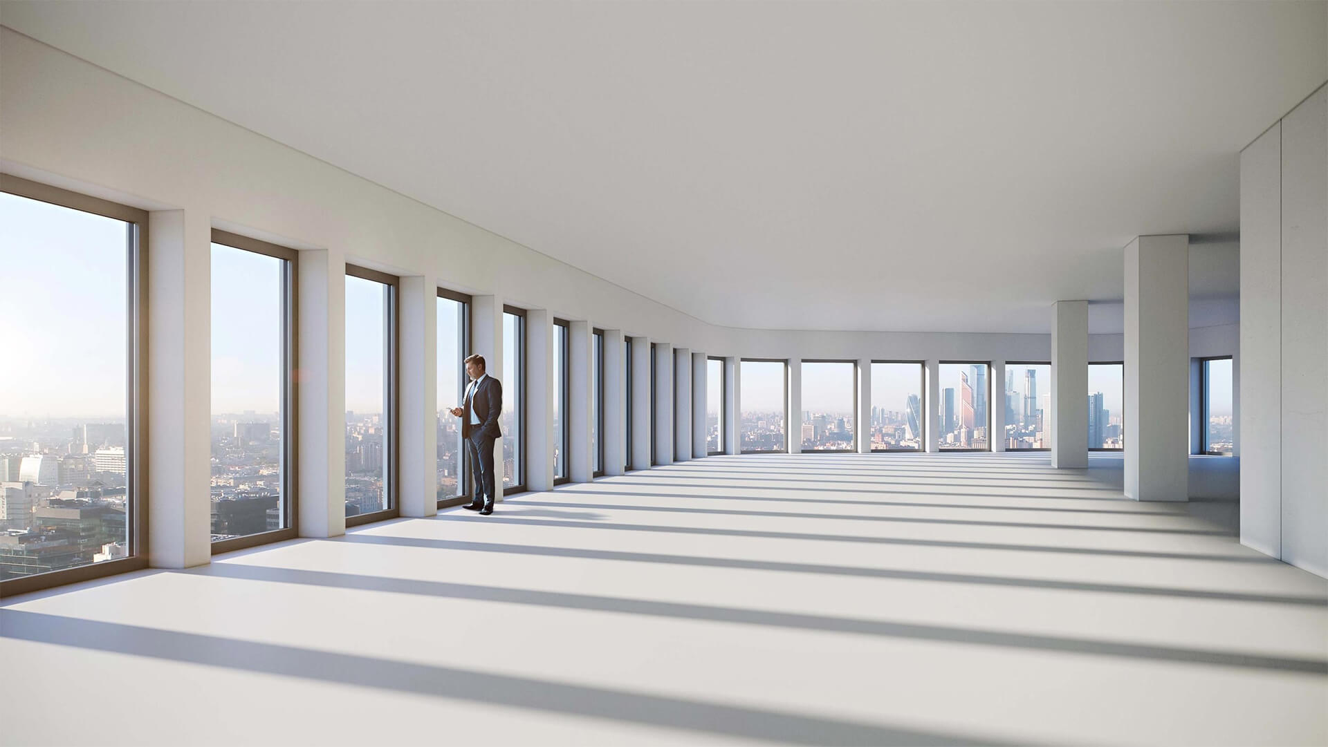 Благодаря панорамным окнам в пол, расположенным по всему периметру здания, офисы наполнены естественным светом, что способствует повышению комфортности рабочих мест. Возможность естественного проветривания обеспечивает дополнительный уровень удобства и улучшает качество воздуха в помещениях.